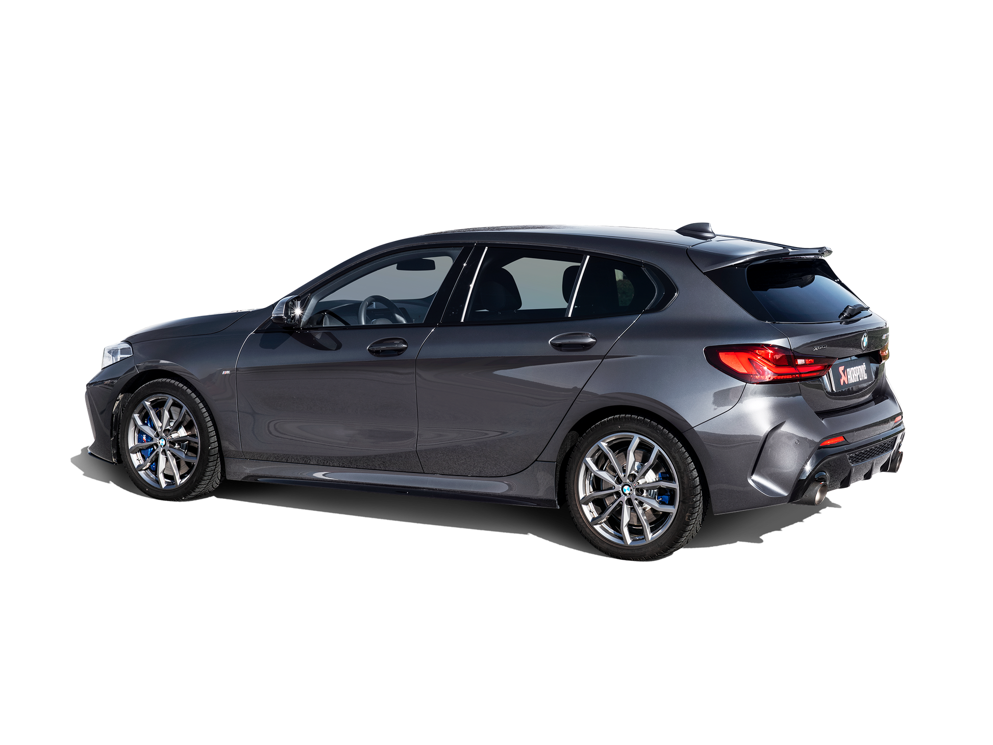 Gefertigt aus hochwertigem Titan ist die Leichtbau-Abgasanlage mit den auffälligen Karbon-Endrohren ein wahrer Genuss für alle Sinne. Die Ventilklappe, deren Gehäuse in der hauseigenen Gießerei gegossen wurde, verleiht dem Abgassystem einen satten Klang mit Betonung der hohen Frequenzen, insbesondere beim Gangwechsel. Das Ganze wird begleitet von einem tiefen Ton, der den Motorklang des Fahrzeugs hervorhebt, ohne dass es für die Insassen unangenehm wird oder Dröhnfrequenzen auftreten. Ein speziell entwickelter, Y-förmiger Abschnitt reduziert die Geräusche der Abgasströme, ohne die Druckimpulsverteilung zu beeinträchtigen, und bietet so gleichzeitig einen kraftvollen Sound und einen optimalen Strömungsweg. Durch die Verwendung von leichtgewichtigen Materialien und einen anderen Aufbau reduziert sich das Gesamtgewicht der Abgasanlage um 9,4 kg, das ist eine Einsparung von 55,6% im Vergleich zur Serienversion. Das Design und die Konstruktion der Abgasanlage optimieren das Leistungs- und Drehmomentniveau über den gesamten Drehzahlbereich. Die Leistung steigt um 3,3 kW (4,5 PS) bei 5.350 U/min und das Drehmoment um 5,9 Nm bei 5.300 U/min. Der Anstieg wurde ermittelt bei hausinternen Testläufen auf dem Akrapovič Prüfstand im Vergleich zu einem BMW M135i mit einer serienmäßigen Abgasanlage. Für ein weiteres Upgrade der Slip-On Line (Titanium) Abgasanlage ist als Option ein Evolution Link pipe set aus Edelstahl erhältlich.