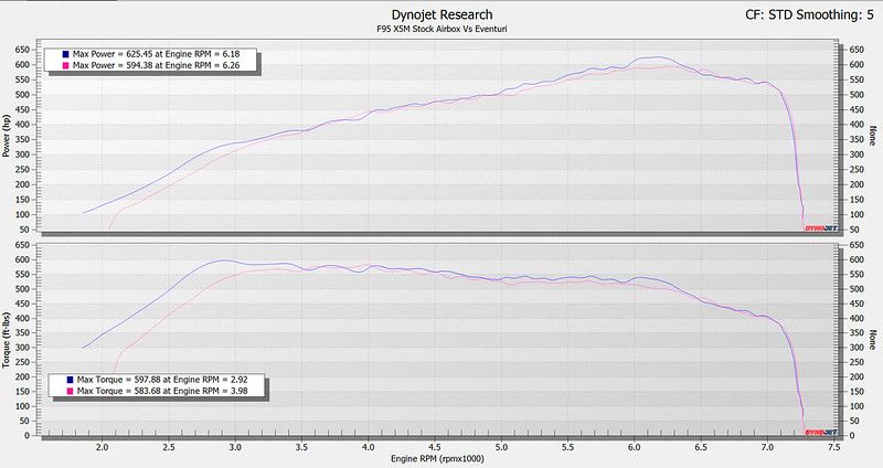 Dieser Ansaugtrakt wurde von MSL Performance in Großbritannien unabhängig auf dem Prüfstand getestet. Die Tests wurden Rücken an Rücken mit der serienmäßigen Airbox durchgeführt und es wurden mehrere Durchläufe mit jeder Konfiguration gemacht. Das getestete Fahrzeug wurde ohne Aktivkohlefilter in den serienmäßigen Airboxen gefahren. Die Ergebnisse auf dem Prüfstand zeigen einen gleichmäßigen Leistungszuwachs über einen großen Teil des Drehzahlbereichs, was darauf zurückzuführen ist, dass die Turbos den maximalen Ladedruck früher erreichen und aufgrund des höheren Wirkungsgrads des Ansaugsystems mit einem geringeren Wastegate-Arbeitszyklus arbeiten. Der Leistungszuwachs schlägt sich auf der Straße in einem verbesserten Ansprechverhalten bei Teil- und Vollgas nieder, wobei das Auto viel eifriger bis zur roten Linie zieht.