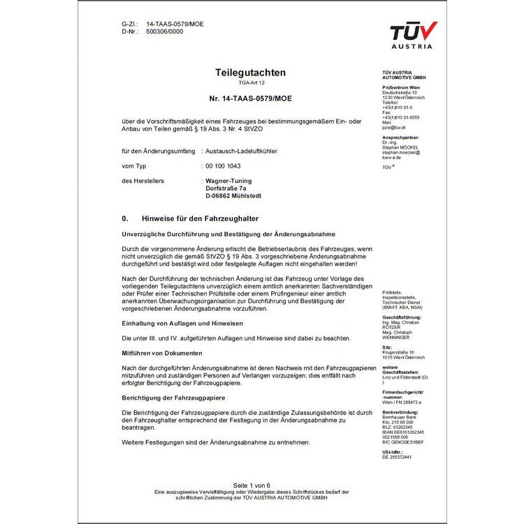 Mit Teilegutachten (zur problemlosen Eintragung nach §19 Absatz 3 der StVZO).