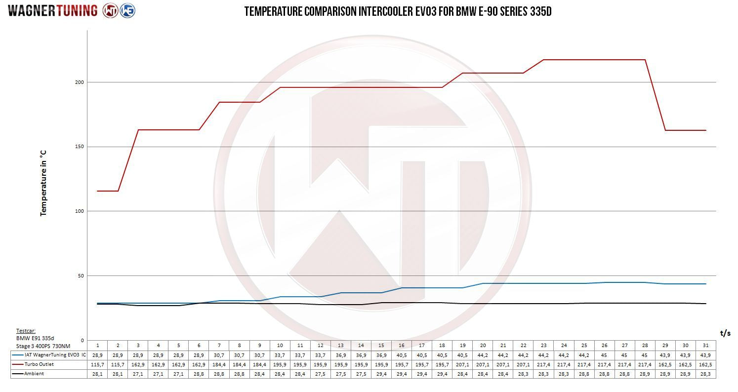 Alle unsere Ladeluftkühler sind mit einer Anti-Korrosions-Beschichtung versehen, die nicht nur Korrosion verhindert, sondern auch exzellente Wärmeleiteigenschaften bietet. Dies garantiert eine dauerhafte und optimale Kühlleistung mit einem spürbaren Leistungsanstieg. Dieses Kit ist komplett einbaufertig und kann problemlos gegen Ihren Serien-Ladeluftkühler ausgetauscht werden. Aufgrund seiner Größe sind jedoch einige kleinere Anpassungen am Kühlersupport erforderlich. Dieser Ladeluftkühler wurde auf bis zu 6 bar getestet und ist absolut druckstabil. Sie können sich auf die Qualität unserer Produkte verlassen. Ob auf der Rennstrecke oder auf der Straße, der EVO 3 Hochleistungsladeluftkühler ist für den Rennsport konzipiert und bietet die Leistung und Kühlung, die Sie brauchen.